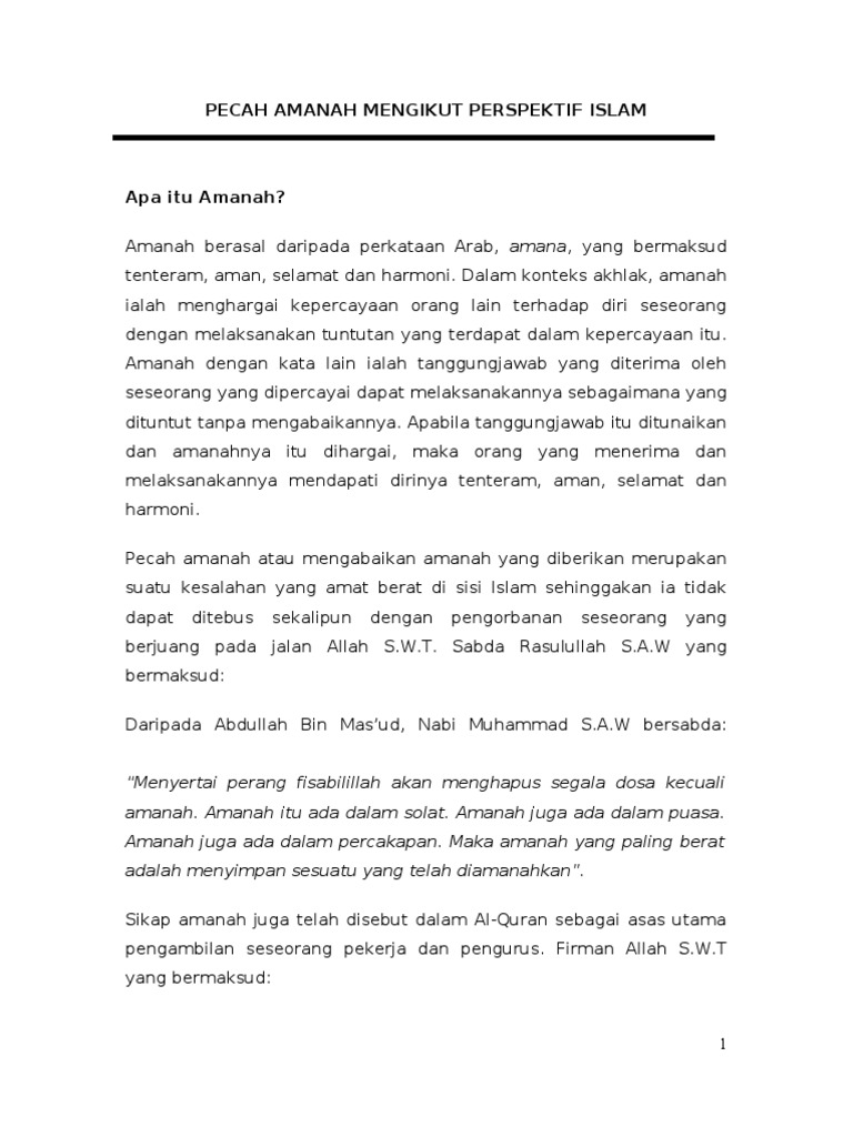 Pecah Amanah Mengikut Perspektif Islam Pdf